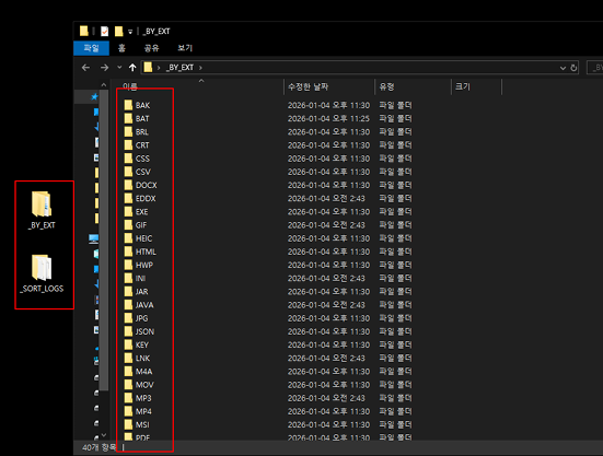 🗂️ 정리 후 폴더 구조 예시(_BY_EXT / _NO_EXT)